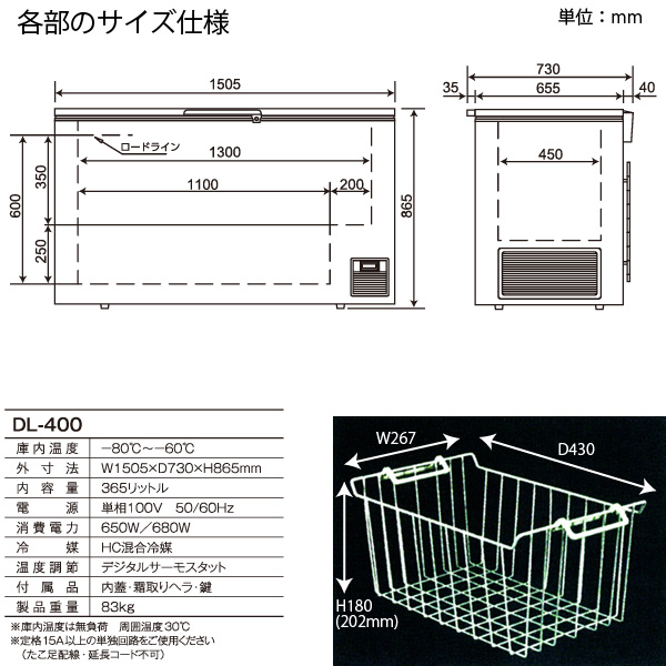 カノウ冷機 超低温フリーザー 冷凍ストッカー DL-400 業務用冷凍庫 365L -80℃ ノンフロン 車上渡し 個人宅不可 代金引換不可 送料無料 (沖縄・離島・郡部除く) 設置オプションあり
