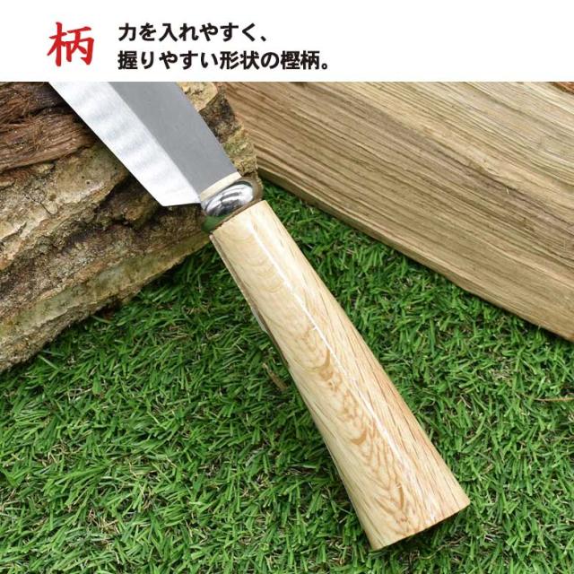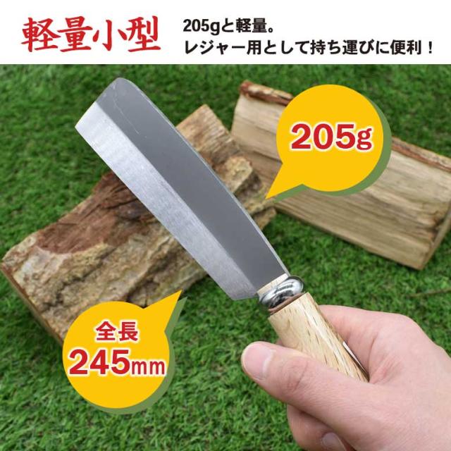 - 鉈は割る、切る、削るに万能な道具です。使い方を誤りますと、ケガや器具破損の原因となりますので、十分ご注意ください。