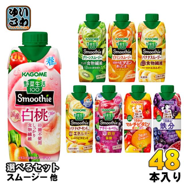 カゴメ スムージー 野菜生活 他 330ml 紙パック 選べる 48本 (12本×4) 季節限定 よりどり アーモンドミックス 国産白桃Mix 鉄分 私のフルーツ 野菜ジュース マルチビタミン