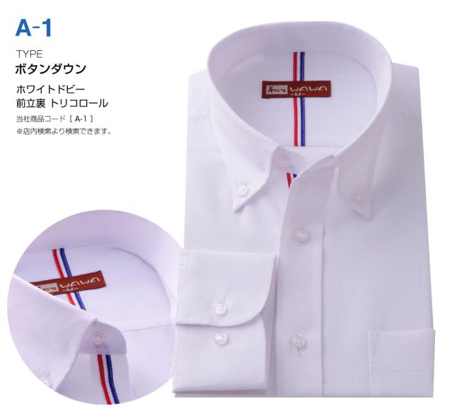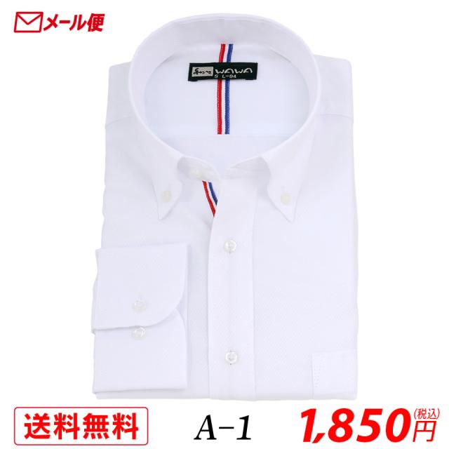 【メール便】長袖 ホワイトドビー メンズ ワイシャツ ボタンダウン A-1 送料無料