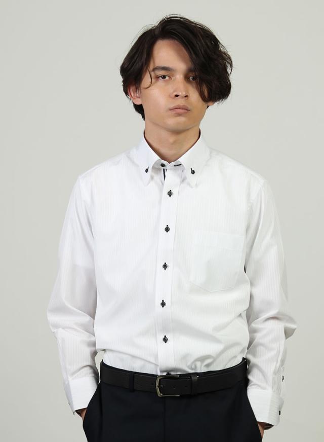 ■ビジネス・ワイシャツ・Yシャツ・カッターシャツ・長袖・長袖ワイシャツ・カフェ・ユニフォーム・ 作業服・事務服・白シャツ・ホワイトシャツ・ホワイトドビー・ブランドシャツ・メンズシャツ・標準体型・スリム体型・襟裏柄・袖裏柄・汗ジミ防止・ボタンダウン・レギュラー・ Sサイズ・Mサイズ・Lサイズ・LLサイズ・3Lサイズ・おしゃれ・カジュアル・クールビズ