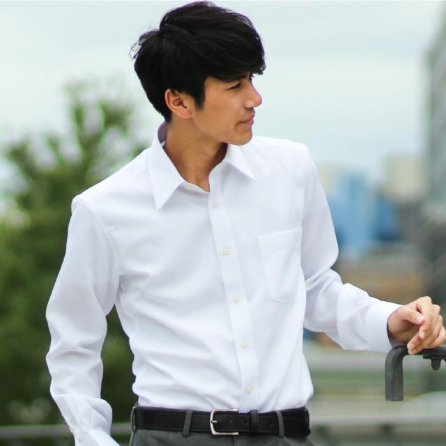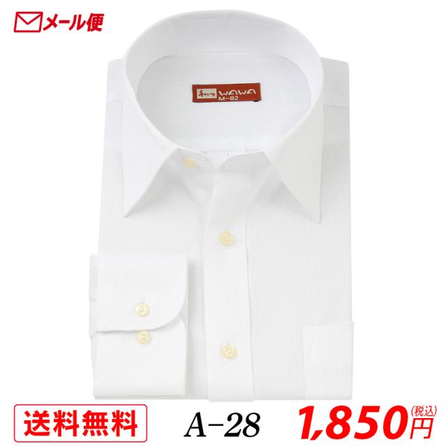【メール便】長袖 ホワイトドビー メンズ ワイシャツ レギュラーカラー A-28 送料無料