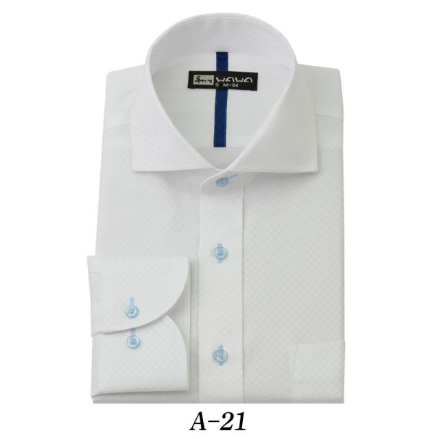 【メール便】長袖 ホワイトドビー メンズ ワイシャツ ワイドカラー A-21 送料無料