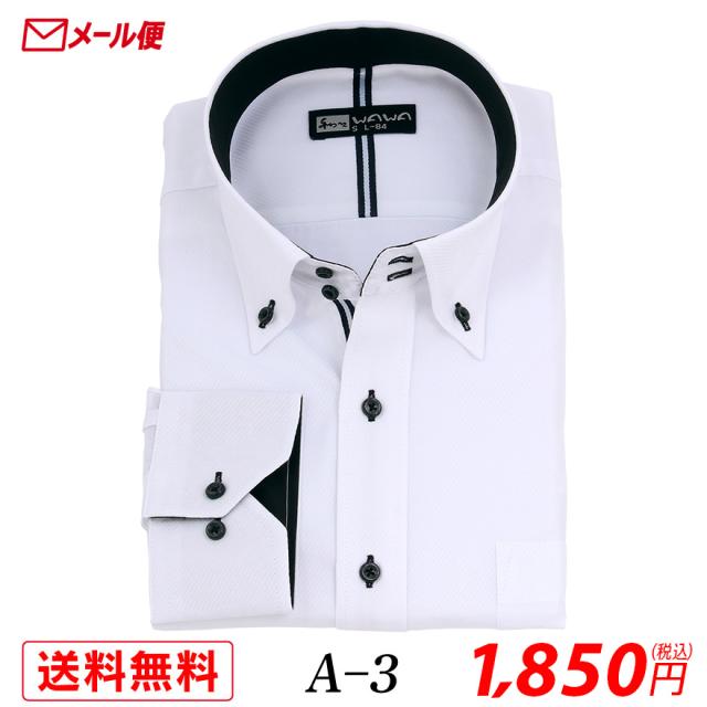 【メール便】長袖 ホワイトドビー メンズ ワイシャツ ドゥエ ボタンダウン A-3 送料無料