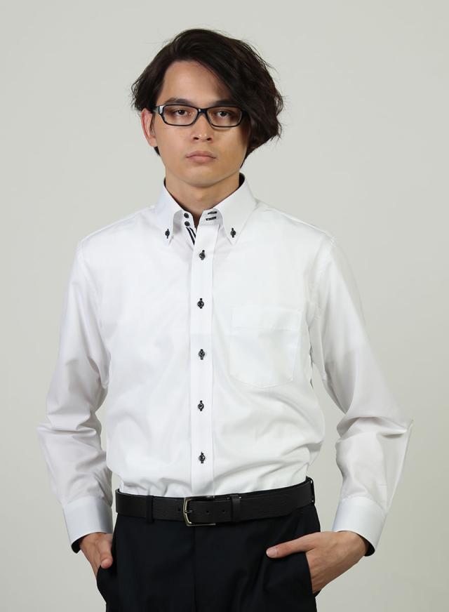 ■ビジネス・ワイシャツ・Yシャツ・カッターシャツ・長袖・長袖ワイシャツ・カフェ・ユニフォーム・ 作業服・事務服・白シャツ・ホワイトシャツ・ホワイトドビー・ブランドシャツ・メンズシャツ・標準体型・スリム体型・襟裏柄・袖裏柄・汗ジミ防止・ボタンダウン・レギュラー・ Sサイズ・Mサイズ・Lサイズ・LLサイズ・3Lサイズ・おしゃれ・カジュアル・クールビズ