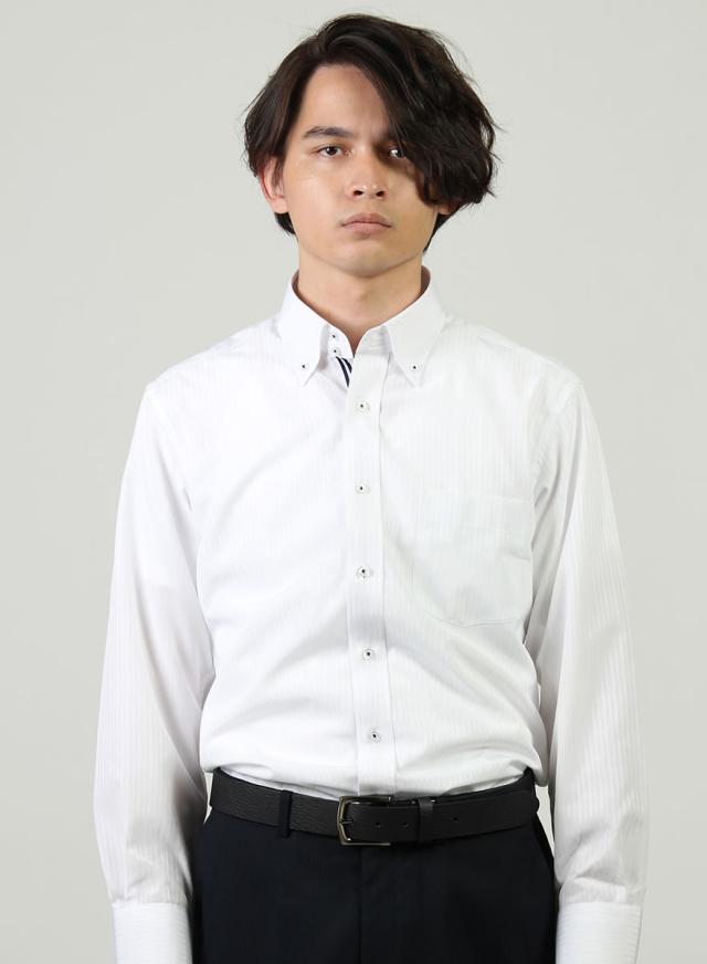 ■ビジネス・ワイシャツ・Yシャツ・カッターシャツ・長袖・長袖ワイシャツ・カフェ・ユニフォーム・ 作業服・事務服・白シャツ・ホワイトシャツ・ホワイトドビー・ブランドシャツ・メンズシャツ・標準体型・スリム体型・襟裏柄・袖裏柄・汗ジミ防止・ボタンダウン・レギュラー・ Sサイズ・Mサイズ・Lサイズ・LLサイズ・3Lサイズ・おしゃれ・カジュアル・クールビズ