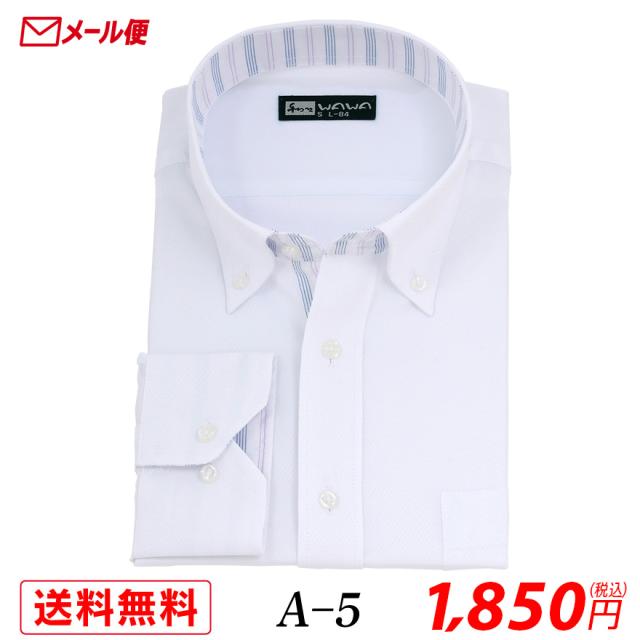 【メール便】長袖 ホワイトドビー メンズ ワイシャツ ボタンダウン A-5 送料無料