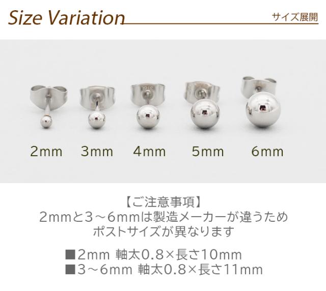 丸玉 ボール ピアス セカンドピアス [軸太0.8mm 長さ12mm] ホワイトゴールド [5mm 6mm] 金属アレルギー対応 ステンレス製 (ロングポスト サージカル 医療用 キャッチ シンプル 定番 メンズ レディース 大きめ)全品1個ずつバラ売り プレゼント
