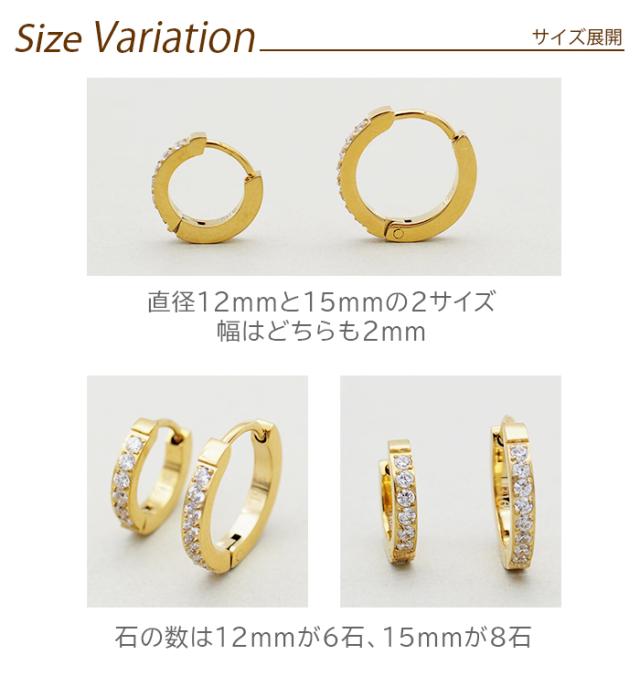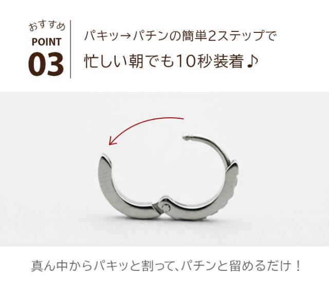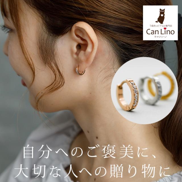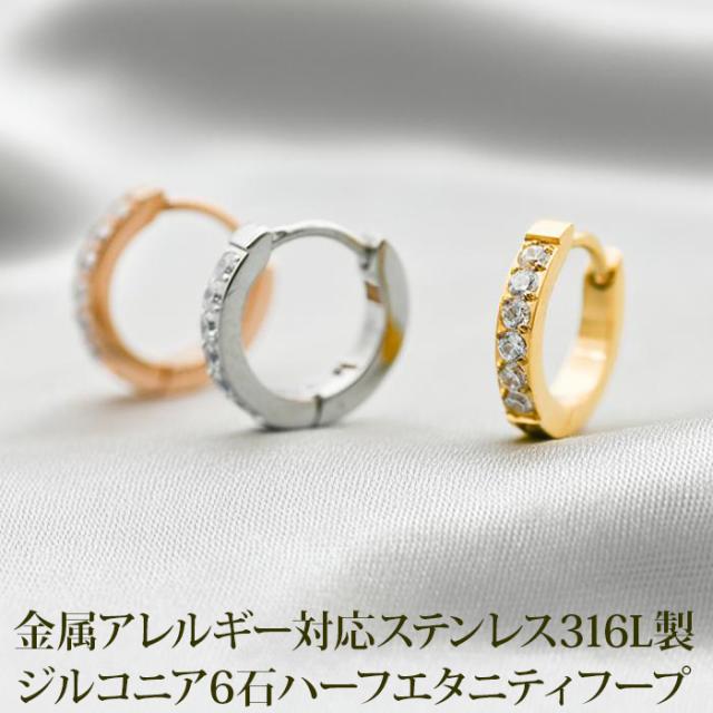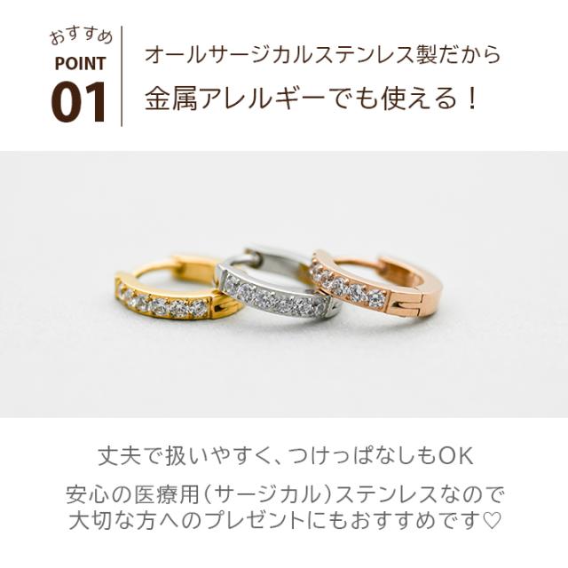 【2個で送料無料】フープ ピアス アレルギー 医療用 ステンレス ハーフエタニティ キュービックジルコニア 6石 2×12mm キャッチレス つけっぱなし ひっかからない 片耳 レディース 小さめ きれいめ 上品 プレゼント