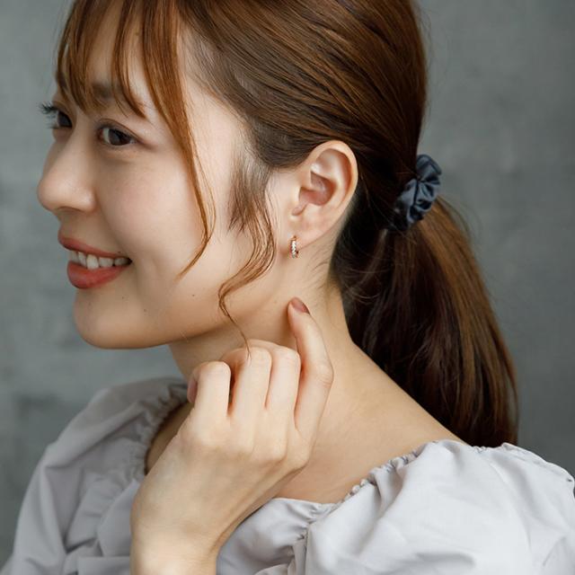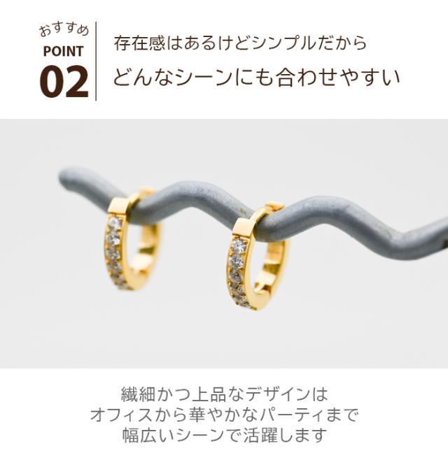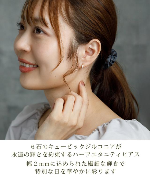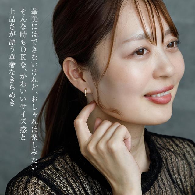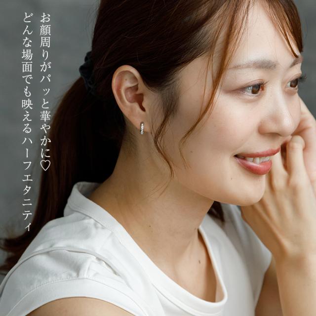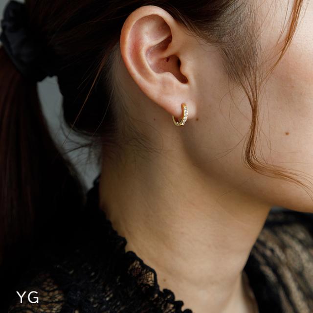 1.5mmの極小キュービック、幅は2mmと繊細なので、華やかながら派手すぎず、お仕事にもOKな上品なハーフエタニティピアスです。