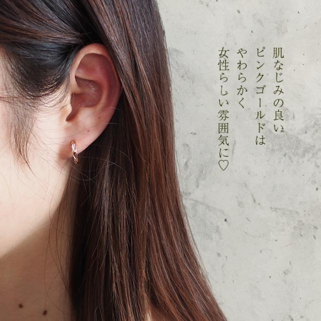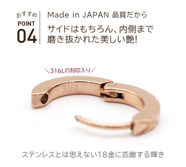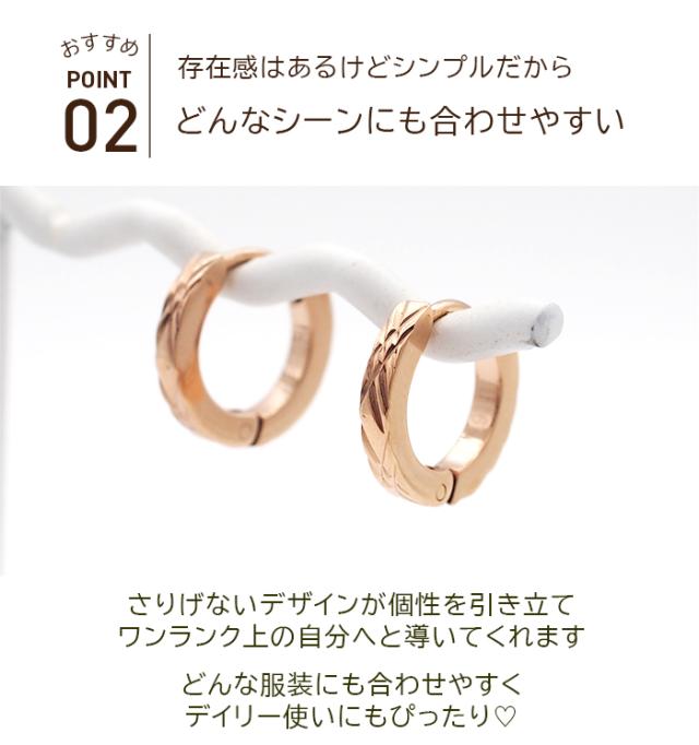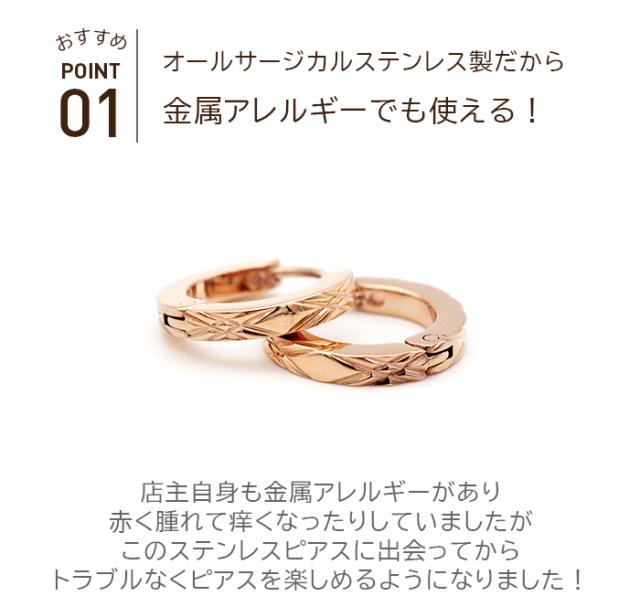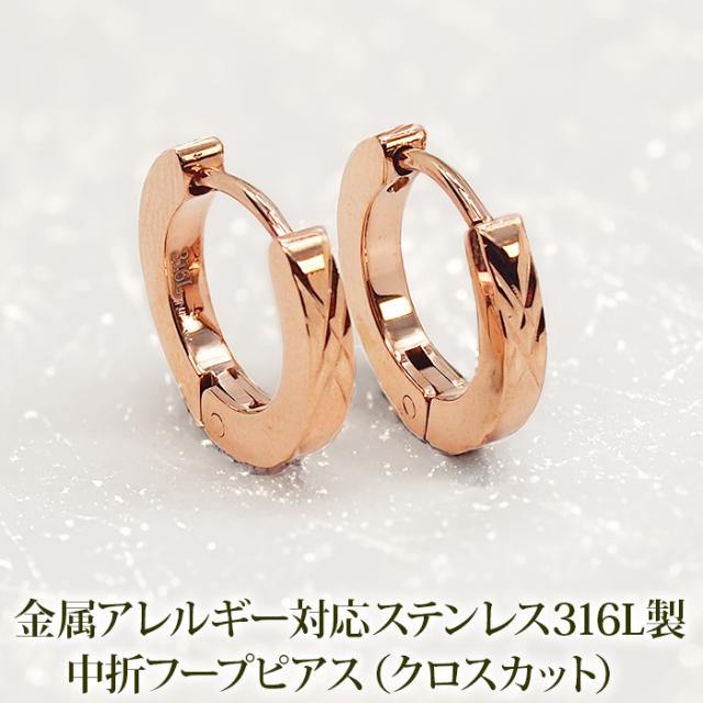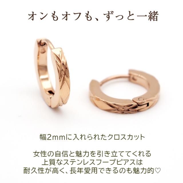 【2個で送料無料】ピアス 輪っか フープピアス つけっぱなし 金属アレルギー メンズ レディース ダイヤカット クロス ピンクゴールド 2×13mm 片耳 医療用 サージカル ステンレス プレゼント