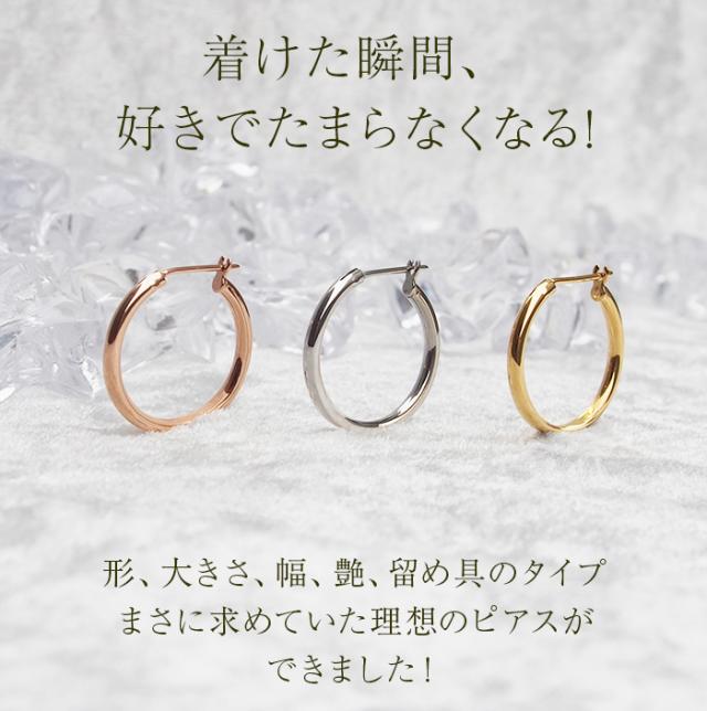 フープピアス 大きめ 金属アレルギー サージカル ステンレス フープ 直径20mm×幅2mm ゴールド ホワイトゴールド ピンクゴールド 片耳 医療用 輪っか リング ピアス