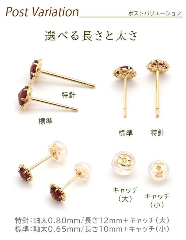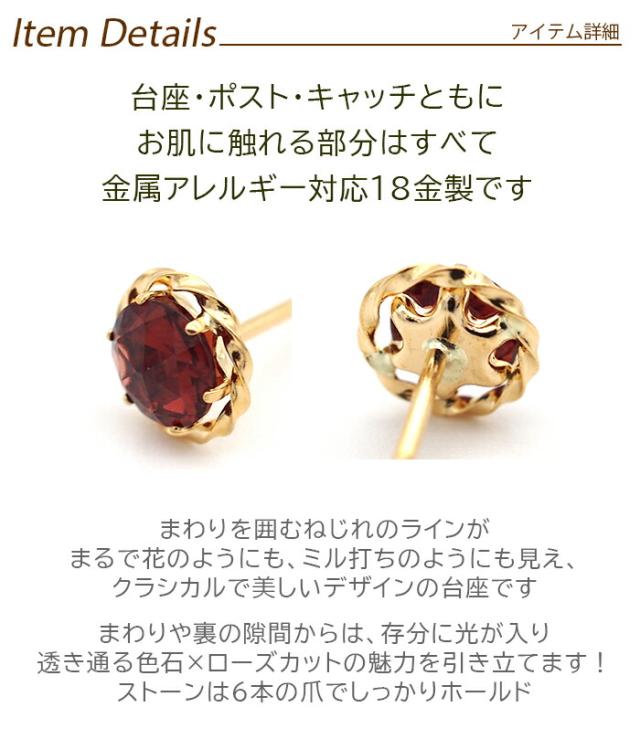 【幸運のジュエリー】ローズカット ピアス K18 18金 ガーネット ピアス 軸太0.65mm ポスト10mm 金属アレルギー対応 片耳 1個 贈り物 ご褒美 お守り