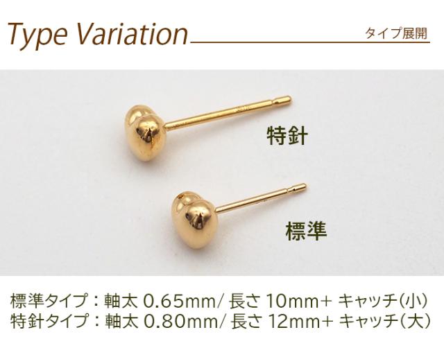 最近のセカンドピアスはまだ穴がふさがりやすいことを考慮して軸が0.8mm〜0.9mmなど太めものが人気ですが、このピアスの軸太0.65mmは日本国内の標準規格です。