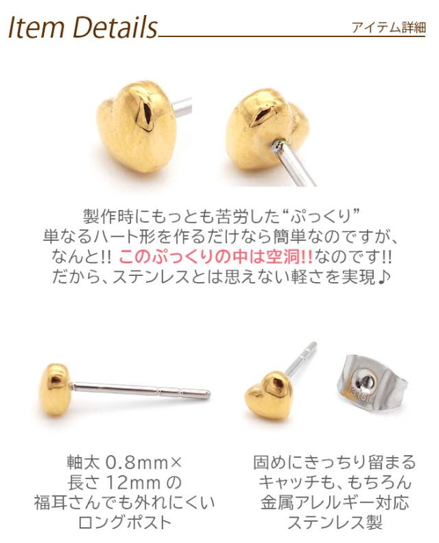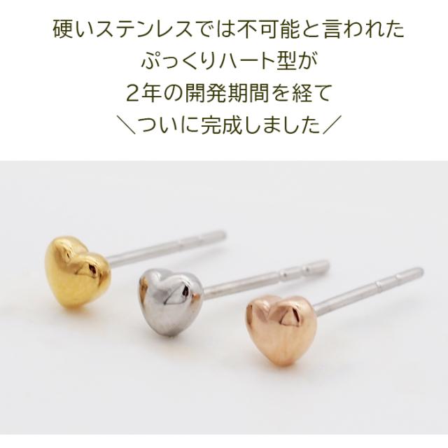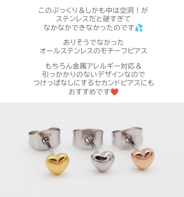 セカンドピアス つけっぱなし ピアスぷっくりハート 4mm 軸太0.8mm ロングポスト12mm 金属アレルギー対応 ステンレス 医療用 サージカル 片耳 1個
