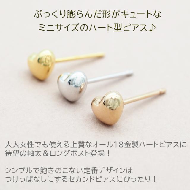 セカンドピアス ハート 5mm レディース K18 つけっぱなし 軸太0.8mm 軸長12mm 特針 日本製 金属アレルギー対応 18金 18K ピアス ロングポスト 地金 片耳 1個