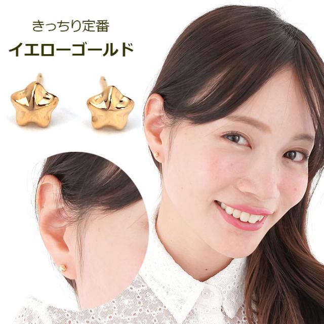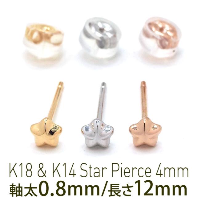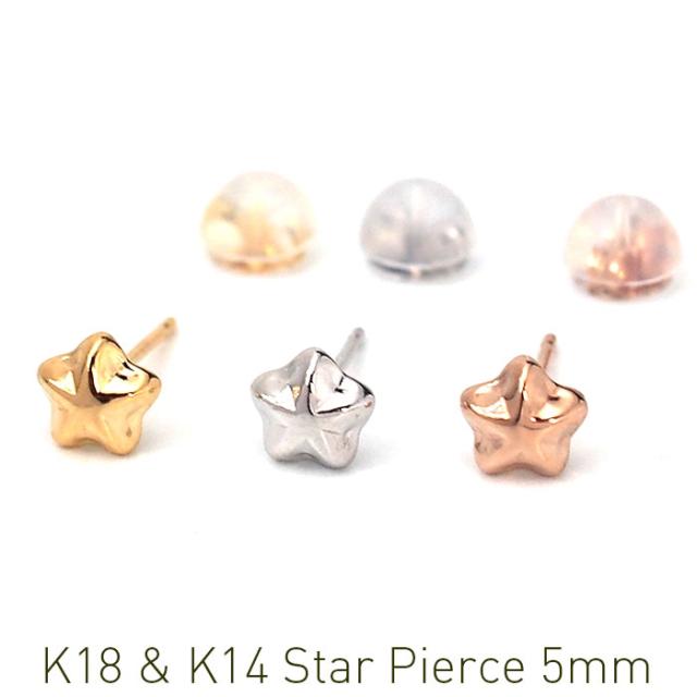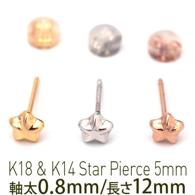 セカンドピアス 星 スター 5mm K18 K14 つけっぱなし 軸太0.8mm 軸長12mm 金属アレルギー対応