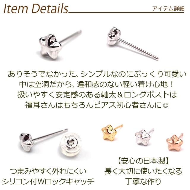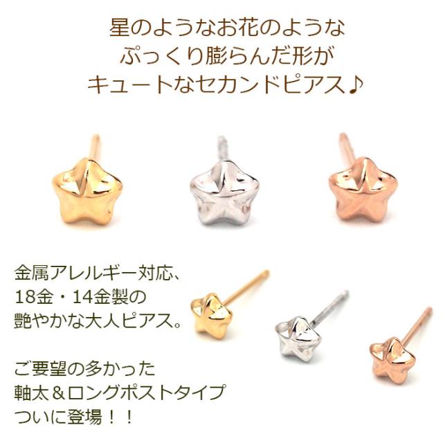 | 星型プチピアス セカンドピアス 軸太 ロングポスト Wロックキャッチ 18金・14金 |