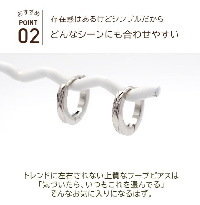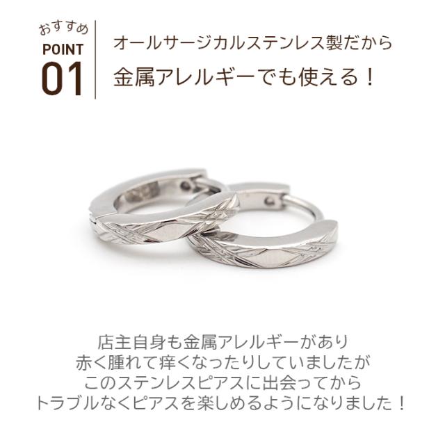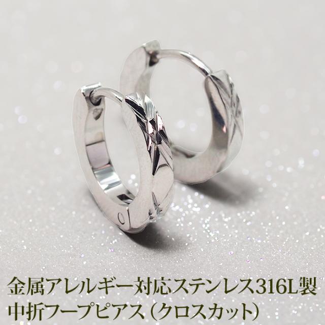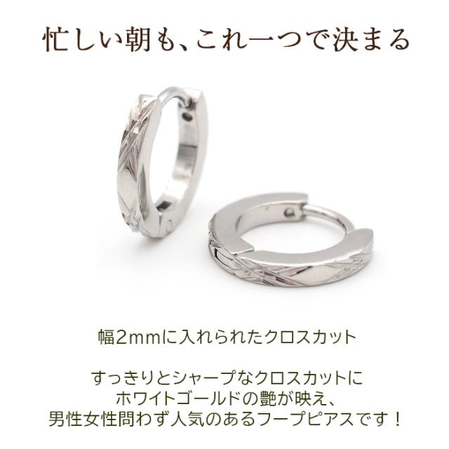 【2個で送料無料】フープピアス つけっぱなし メンズ レディース キャッチレス リング ダイヤカット クロス ホワイトゴールド WG 2×13mm 中折れ 片耳 医療用 アレルギー サージカルステンレス プレゼント