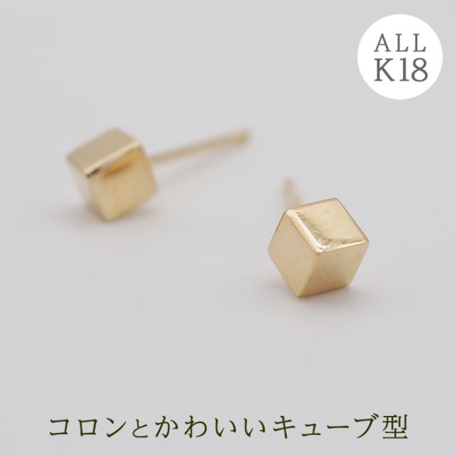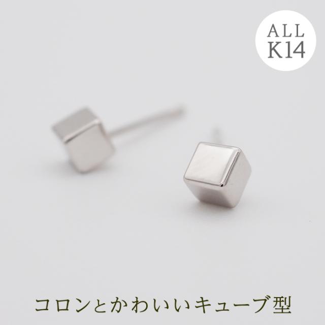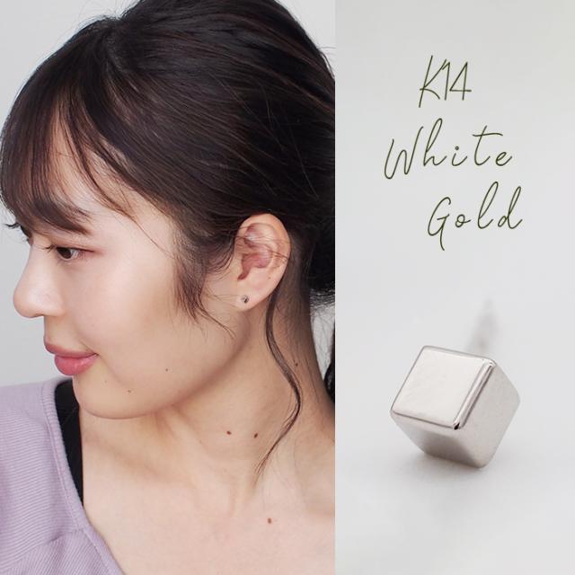 | K14 WG 14金 ホワイトゴールド キューブ型(立方体) ミニ スタッド ピアス |
