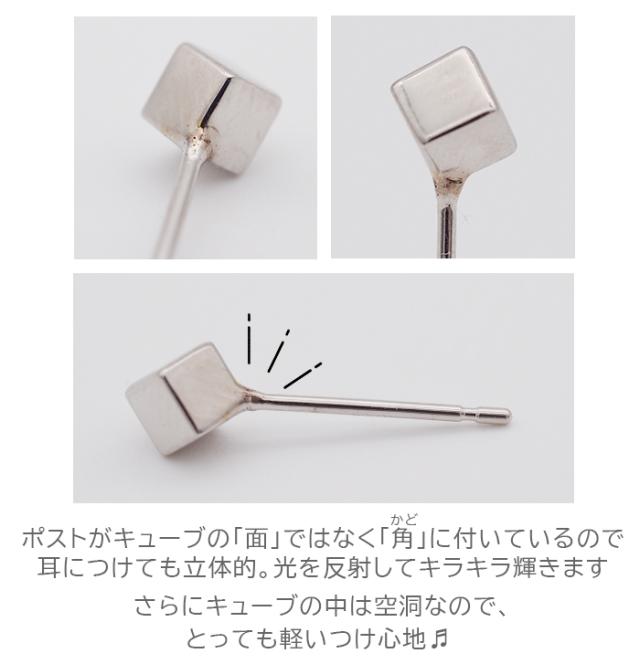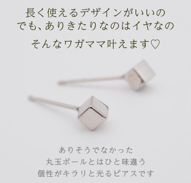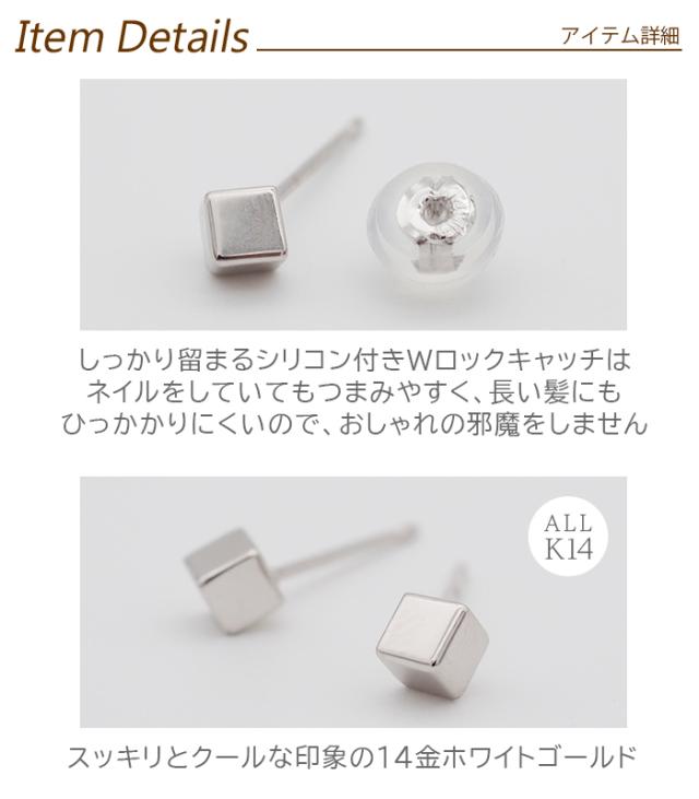 キューブ型ピアス レディース メンズ セカンドピアス K14WG 14金ホワイトゴールド [3mm] ピアス 日本製 ダブルロック式シリコンキャッチ 地金 立方体 四角 正方形 プレゼント