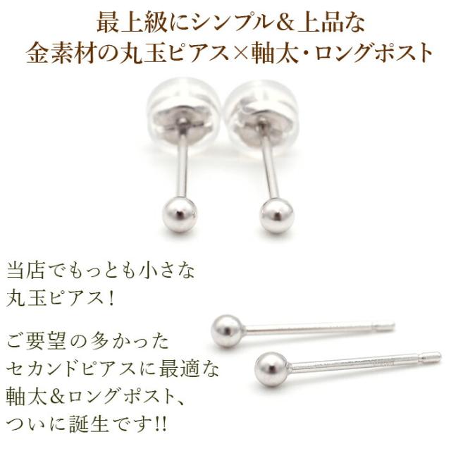 【お試し送料無料】究極のシンプル! セカンドピアス 軸太0.8mm ロングポスト12mm 18K 18金 丸玉 ボール 2.5mm つけっぱなし ホワイトゴールド 特針 金属アレルギー対応 片耳 1個 日本製