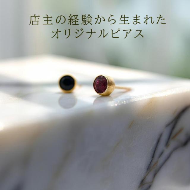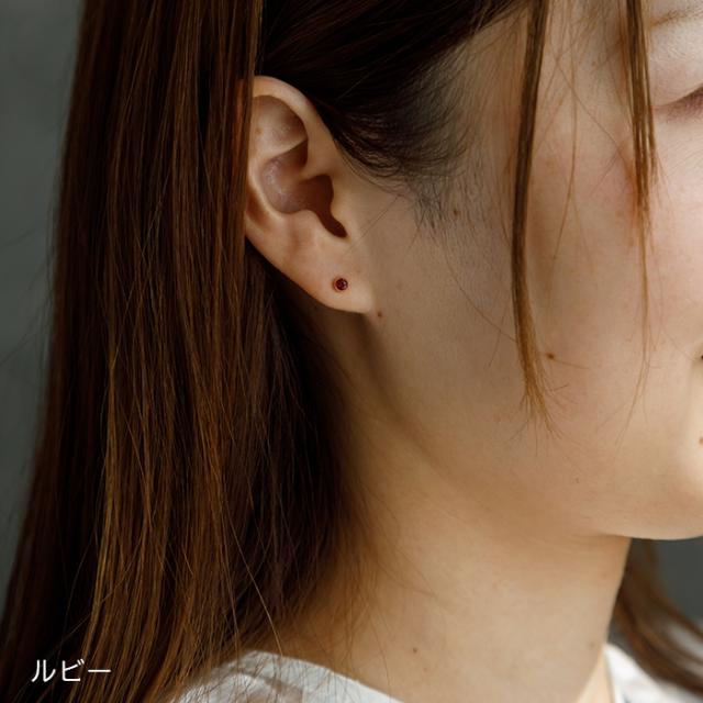 もうタオルをひっかけない!セカンドピアス 天然石 ルビー サファイア 3mm K18 フクリン 【品質保証書つき】 ピアス 金属アレルギー 18金 18K 日本製 片耳 プレゼント