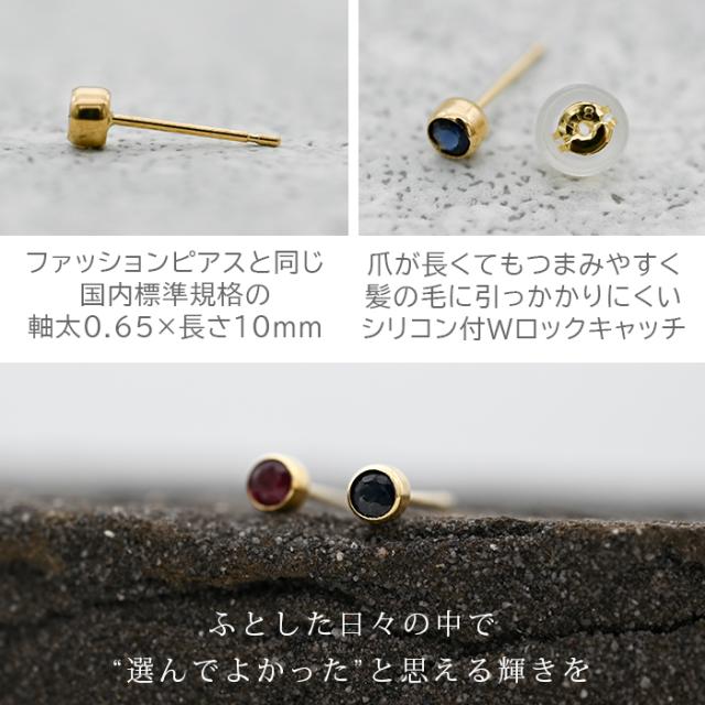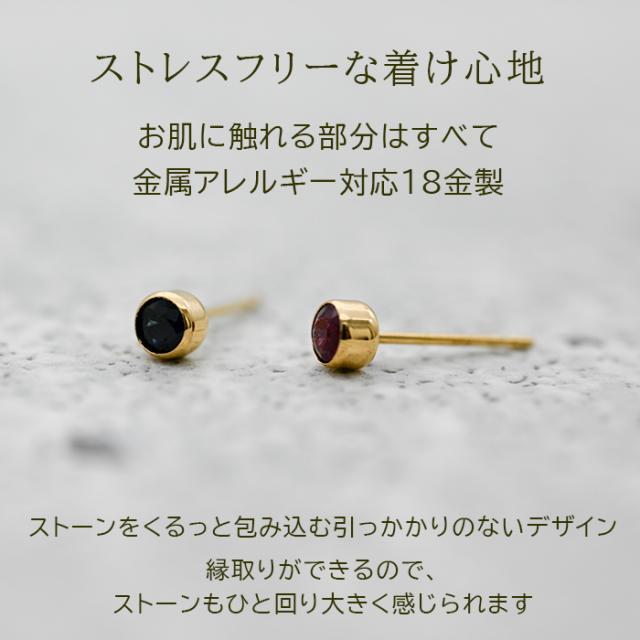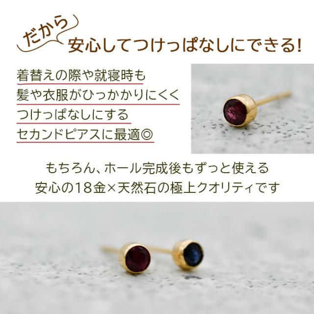 もうタオルをひっかけない!セカンドピアス 天然石 ルビー サファイア 3mm K18 フクリン 【品質保証書つき】 ピアス 金属アレルギー 18金 18K 日本製 片耳 プレゼント