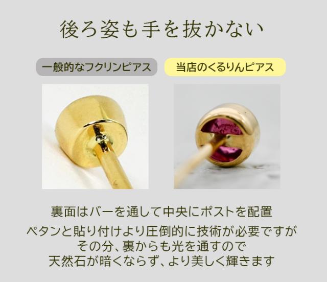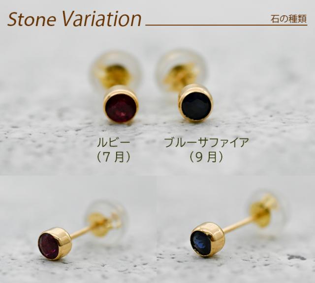 | セカンドピアス ふせこみ K18(18金・18K)製 天然石 一粒ピアス ルビー サファイヤ (フセコミ 伏せ込み フクリン ふくりん ベゼルセッティング オールラウンド クラシック) |