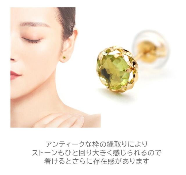 | K18 YG ペリドット ローズカット アンティーク フレーム 誕生石 天然石 日本製 |