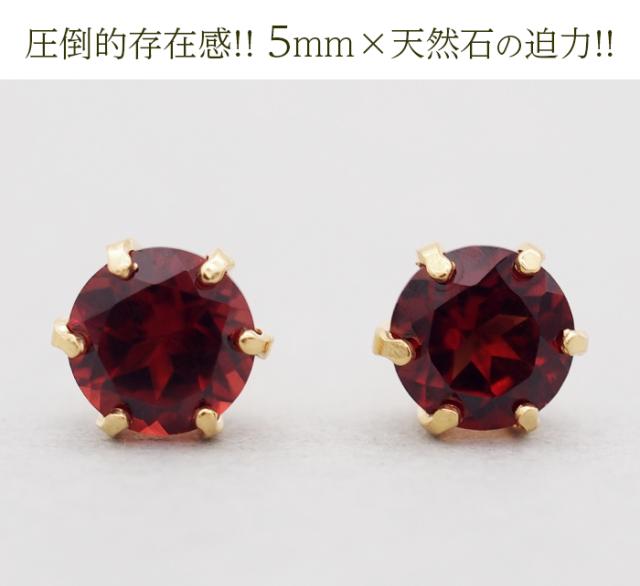 | K18 YG 天然石 ピアス(セカンドピアス) ガーネット 5mm パワーストーン 誕生石 プレゼント |
