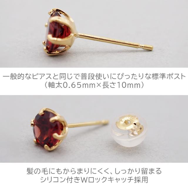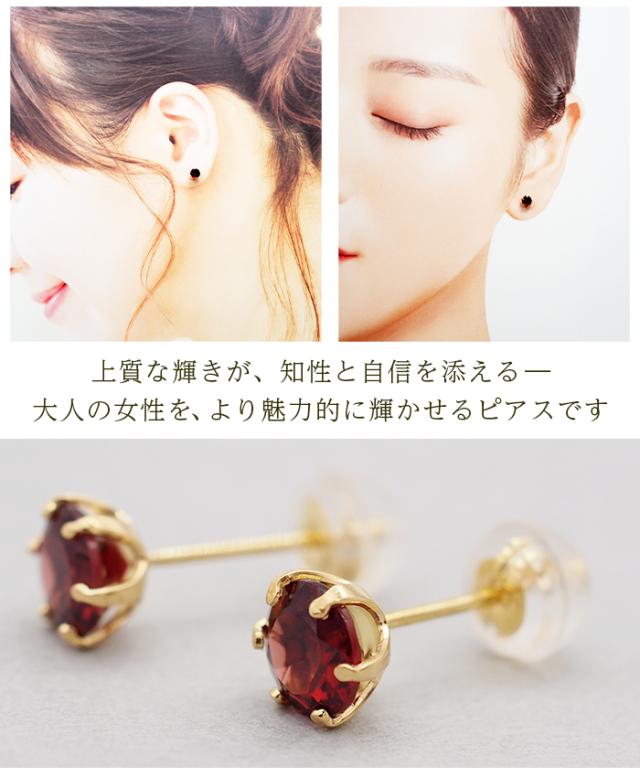 セカンドピアス つけっぱなし K18 天然石 ガーネット 5mm パワーストーン 【品質保証書つき】 日本製 片耳 金属アレルギー対応 プレゼント