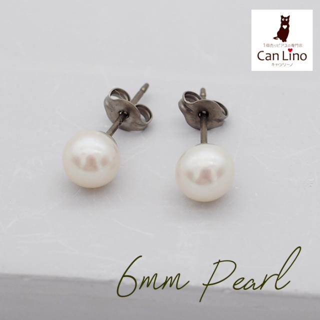 | 6mmサイズのひとつぶ淡水パールピアス 金属アレルギー対応 純チタン製ポスト&台座&キャッチ |
