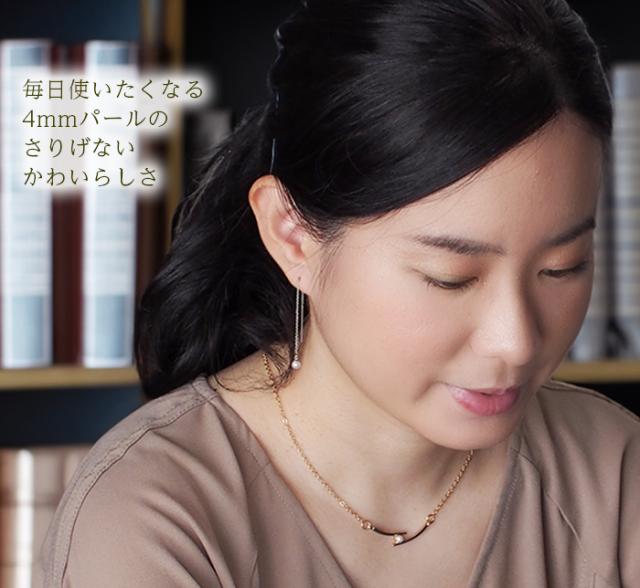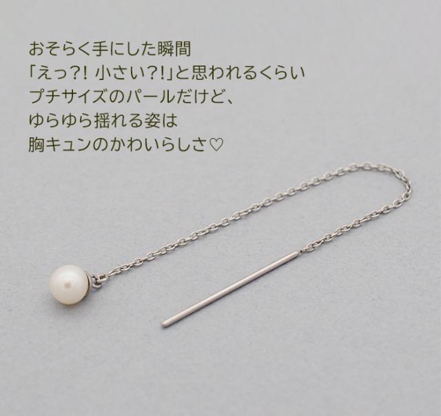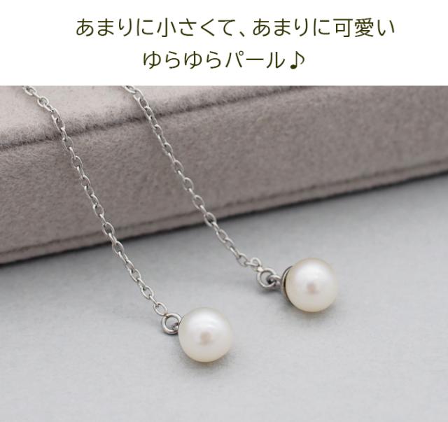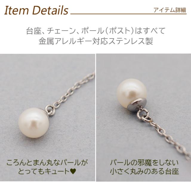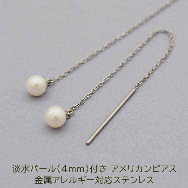 淡水パール付き アメリカンピアス 真珠 4mm 金属アレルギー対応 ステンレス 医療用 サージカル チェーン 6cm 極細0.8mm 片耳 1本