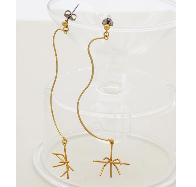 | 京都の作家さんによるひとつずつ手作りの真鍮×アンティークゴールドがこっくりと深く落ち着いた佇まいを感じるピアス。 個性的なカーブが作り出す動きはランダムで予測不能、計算できない独特の揺れに視線クギヅケ!! 細く華奢ない印象&シンプルなデザインながら、趣のあるビンテージ感で、ピカピカ輝くゴールドとは一味違う、大人の雰囲気を楽しんで♪ |