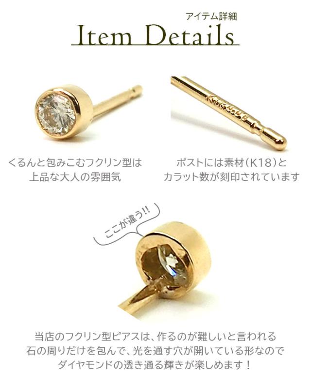 【安心の日本製&鑑別書つき】 ピアス 18金 セカンドピアス 天然ダイヤモンド ピアス 0.06ct フクリン K18 軸太0.8mm ロングポスト12mm 特針 金属アレルギー対応 片耳 1個