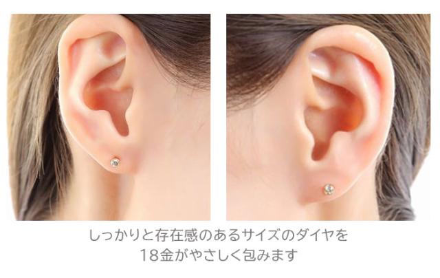 ポストにカラット数の刻印入り 全経:約4mm、ダイヤモンドの直径:約3mm |