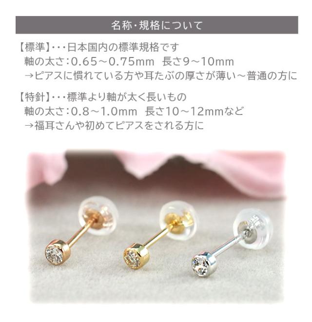 | セカンドピアス ダイヤモンド レディース K18 軸太 ロングポスト ひと粒ダイヤモンドピアス(伏せこみ) |