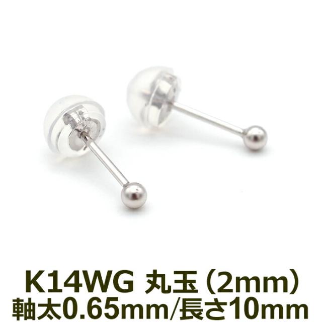 | セカンドピアス ピアス オール14金ホワイトゴールド製 丸玉ボール シンプルピアス [2mm] |