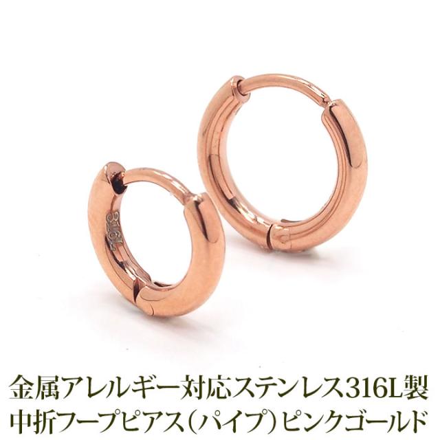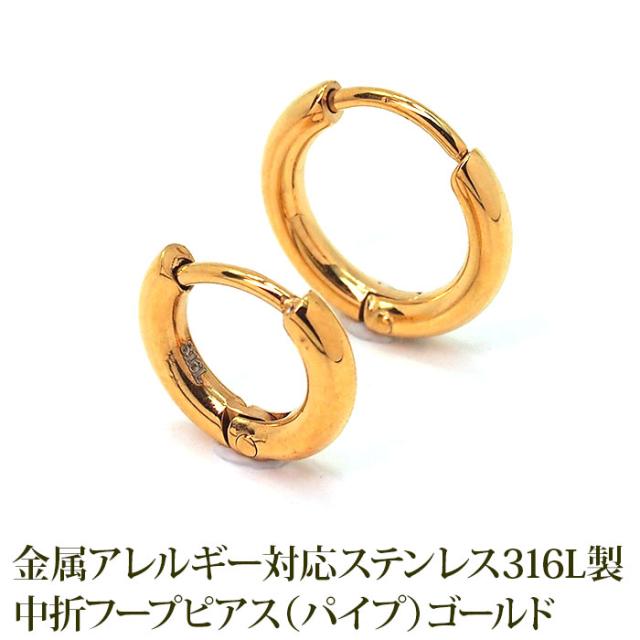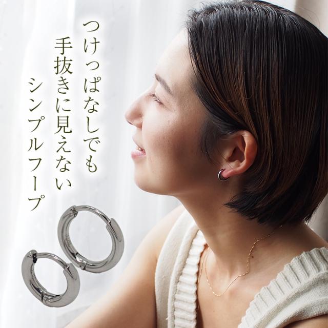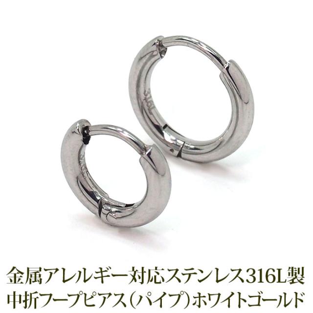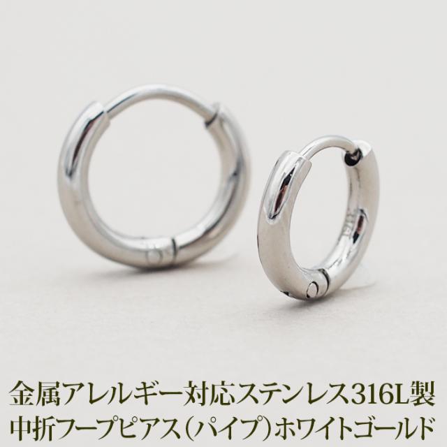 ピアス フープピアス つけっぱなし パイプ ホワイトゴールド WG 中折れ 2×10mm 12mm 金属アレルギー対応 ステンレス 小さめ ひっかからない 片耳 1個