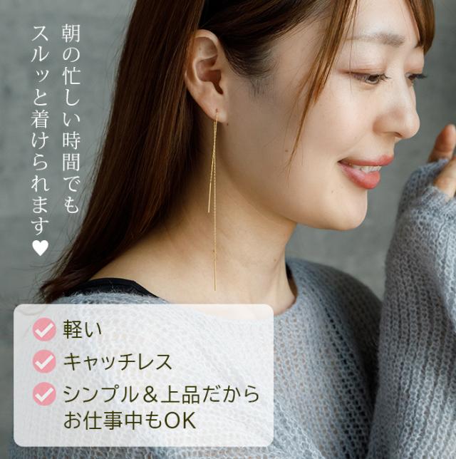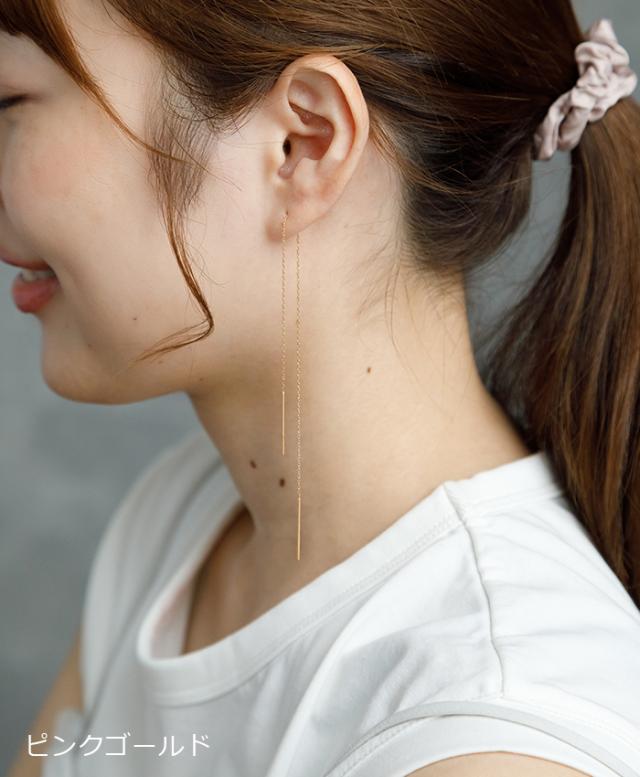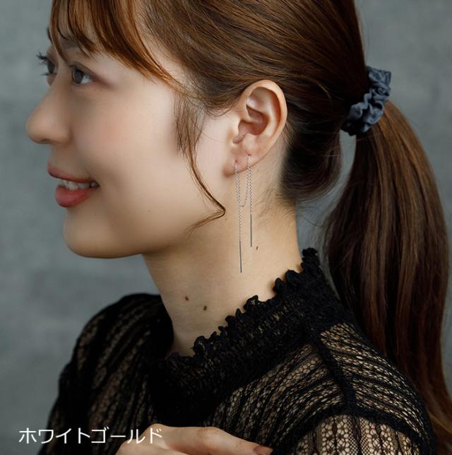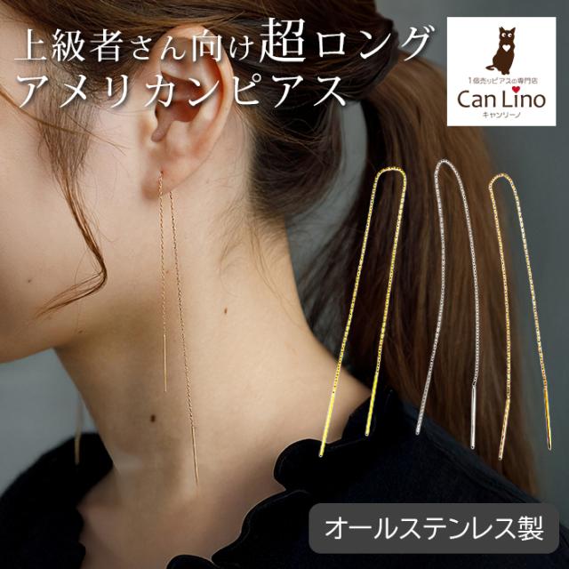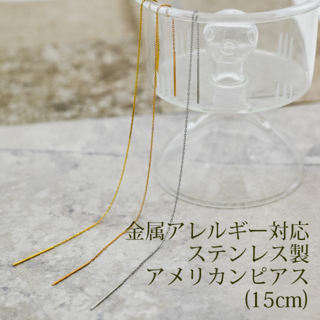 アメリカンピアス チェーンピアス 金属アレルギー チェーン太さ0.8mm 長さ15cm ポスト2cm オールステンレス製 イエローゴルド ホワイトゴールド ピンクゴールド 揺れる 極細 サージカル 医療用 シンプル レディース プレゼント