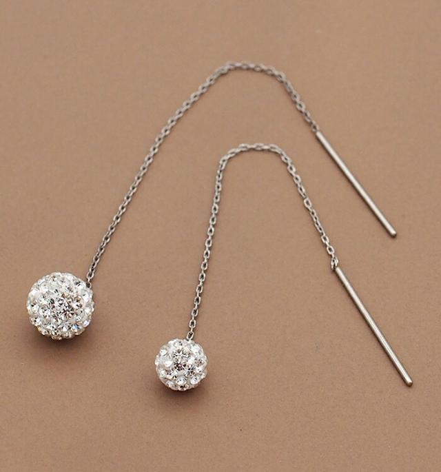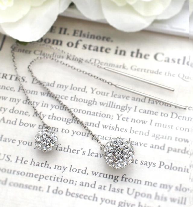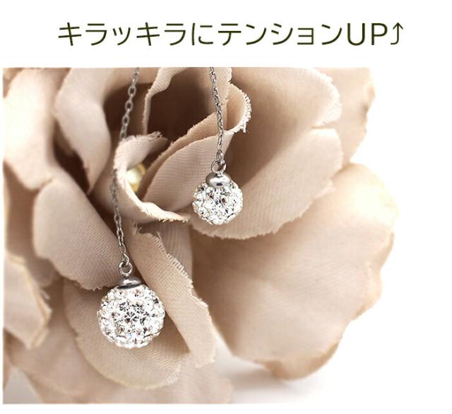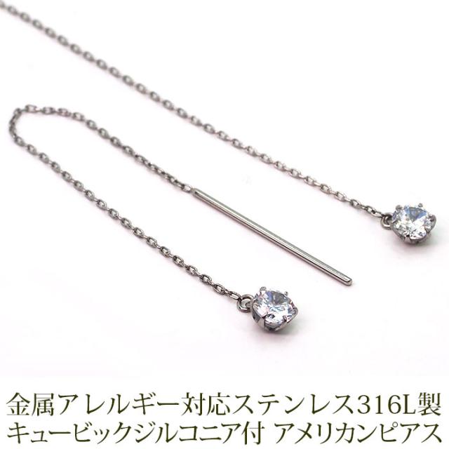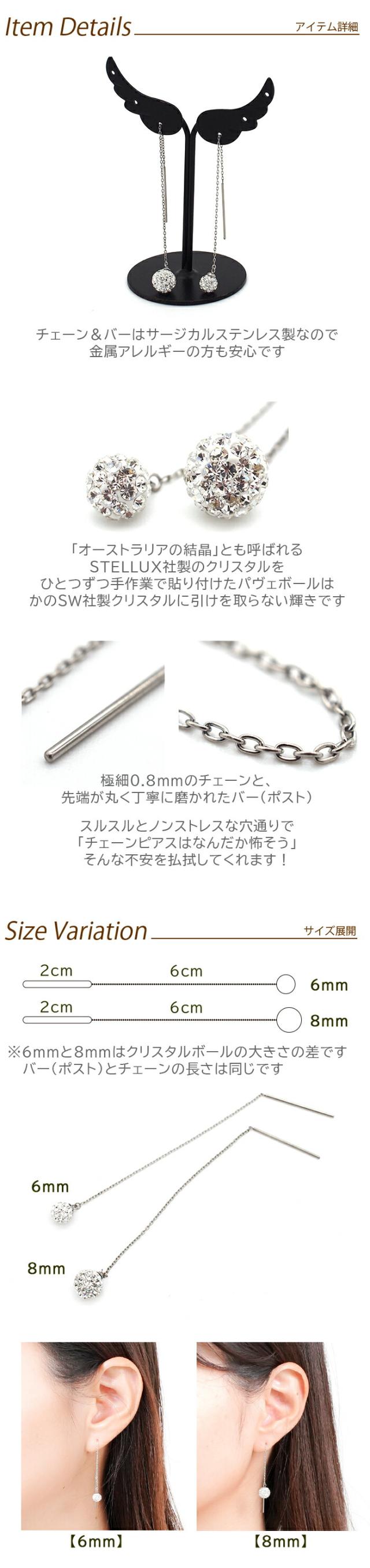 クリスタルボール付き アメリカンピアス 金属アレルギー対応 ステンレス 医療用 サージカル チェーン 6cm 極細0.8mm パヴェボール 6mm 8mm 片耳 1本