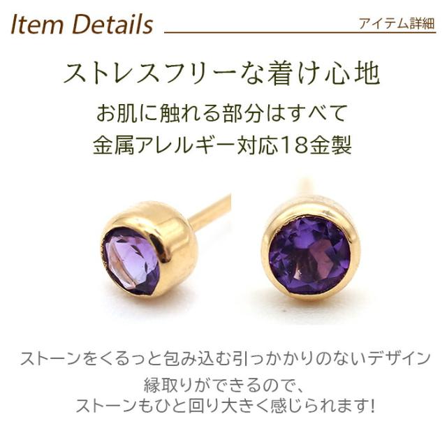 | 【くるりんピアス】 セカンドピアス ふせこみ K18(18金・18K)製 天然石 一粒ピアス (フセコミ 伏せ込み フクリン ふくりん ベゼルセッティング オールラウンド クラシック) |