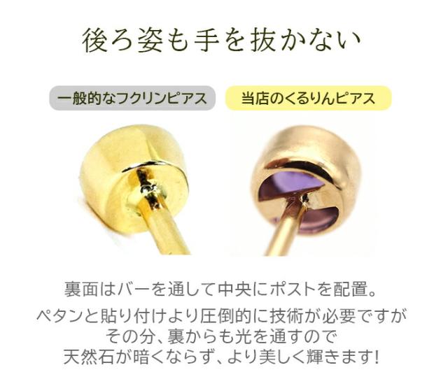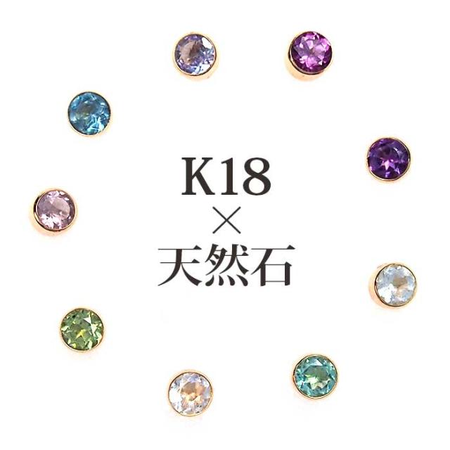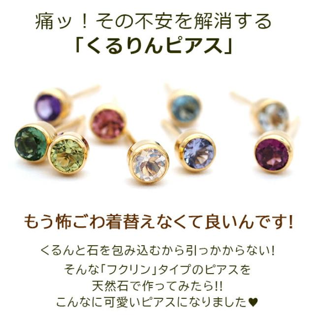 | 【くるりんピアス】 セカンドピアス ふせこみ K18(18金・18K)製 天然石 一粒ピアス (フセコミ 伏せ込み フクリン ふくりん ベゼルセッティング オールラウンド クラシック) |