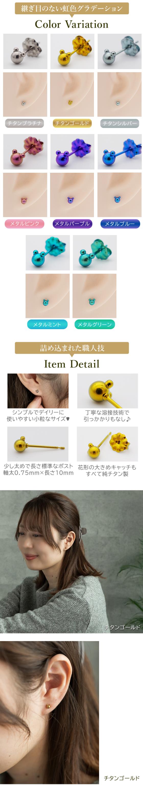 セカンドピアス 純チタン 軸太0.75mm 長さ10mm つけっぱなし 100%純チタン ピアス クマ ベアー 金属アレルギー対応 返金保証 医療用 片耳 1個 耳たぶ