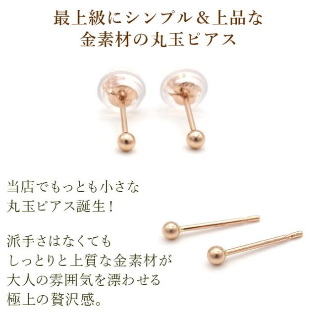 | セカンドピアス ピアス オール18金ピンクゴールド製 丸玉ボール シンプルピアス [2mm] |