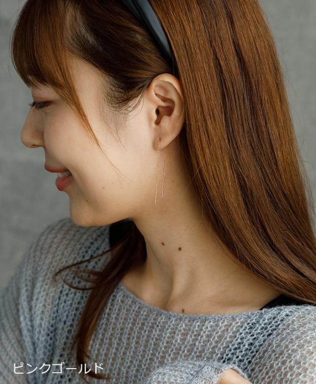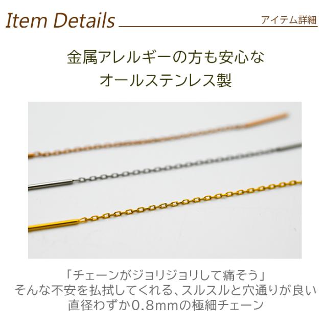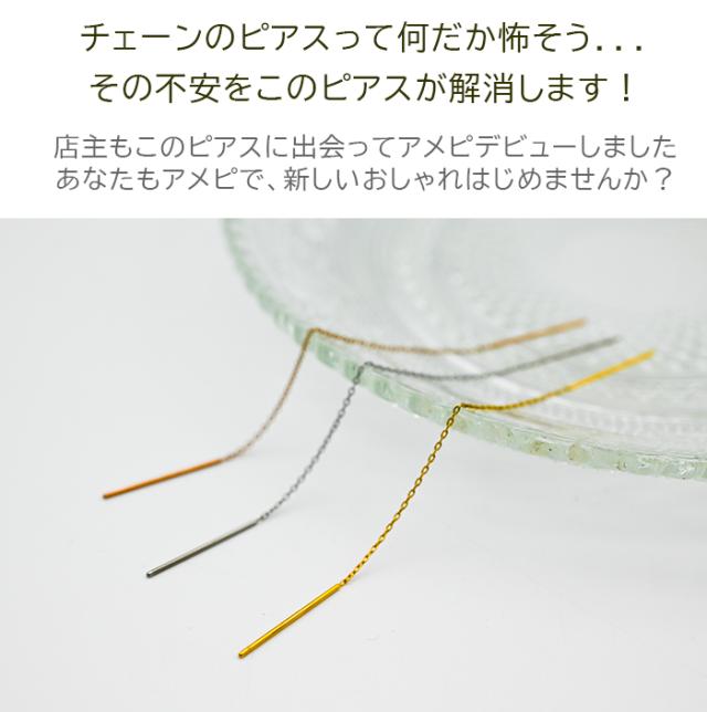 アメリカンピアス チェーンピアス 金属アレルギー対応 [チェーン太さ0.8mm/長さ6cm+ポスト2cm] オールステンレス製(イエローゴルド・ホワイトゴールド・ピンクゴールド)揺れる 極細 サージカル 医療用 シンプル レディース プレゼント