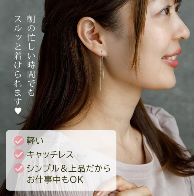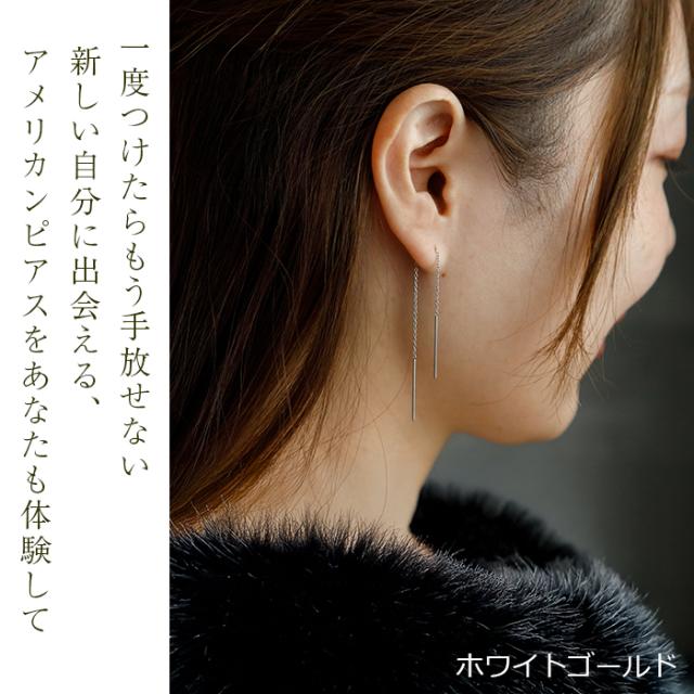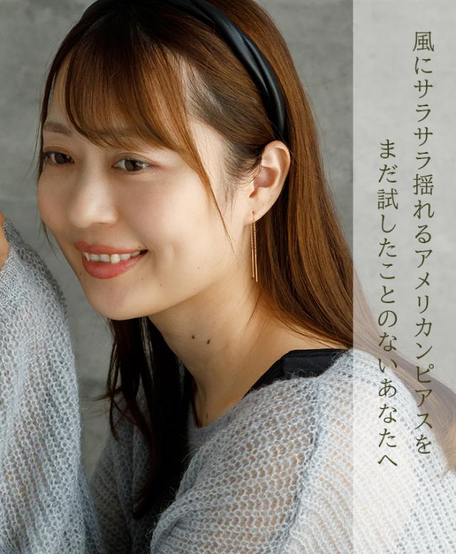 シンプルなチェーン&ポストのみのアメリカンピアスは、キャッチがなく穴に通すだけなので、なんだか外れやすそうなイメージかもしれませんが、穴に通した際に両端の重さが均一になるので、意外にも外れたりなくしたりしにくいものなんです。