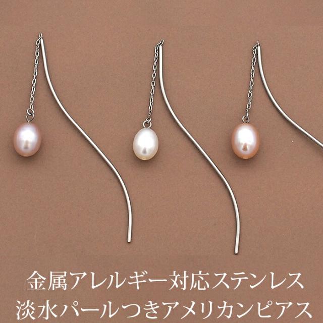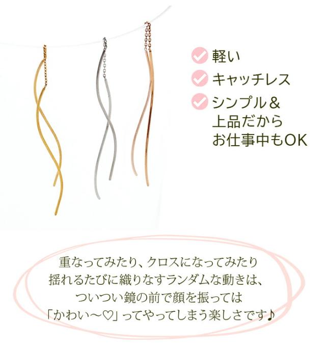 【2個で送料無料】ピアス 揺れる アメリカンピアス S字&チェーン 金属アレルギー対応 ステンレス サージカル フック ウェーブ キャッチなし プレゼント