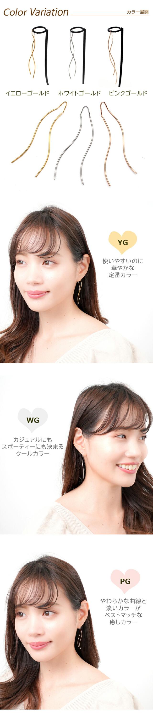 | イエローゴールド(イオンプレートメッキ[チタン]) ホワイトゴールド(メッキなし) ピンクゴールド(イオンプレートメッキ[チタン+金]) |
